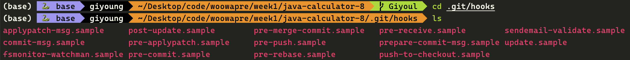 위에서 다뤘던 파일들의 sample hook 파일들이 위치해있었습니다.
